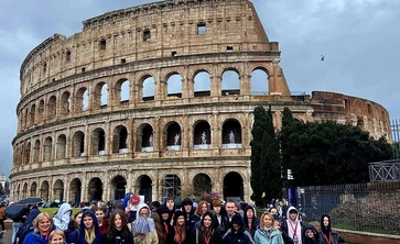 Na zdjęciu grupa osób na na tle górzystego terenu oraz logo Erasmus+