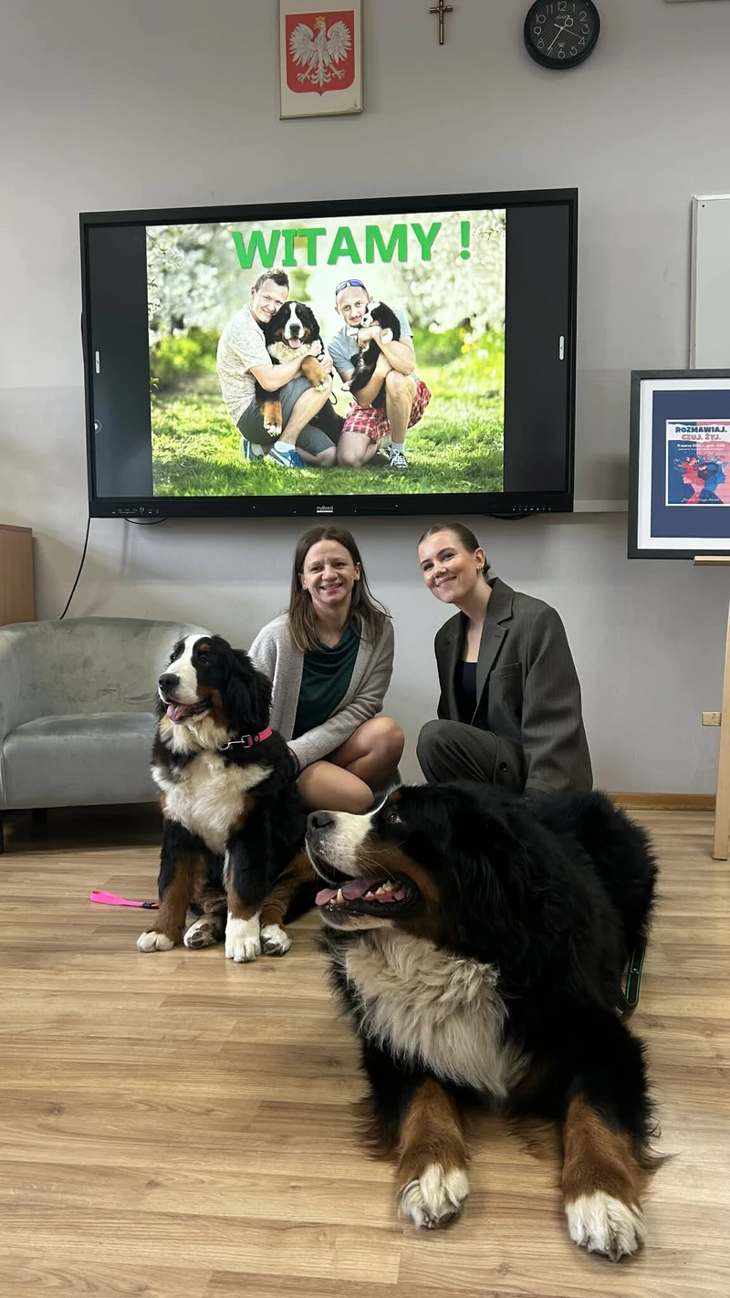 -Panowie Mieczysław Mirek i Janusz Stanek, dogoterapeuci i hodowcy psów rasy berneński pies pasterski, którzy zaprezentowali niezwykłą rolę zwierząt w terapii i poprawie naszego samopoczucia, wywołując przy tym wiele uśmiechów ????
