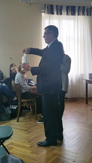 Uczniowie klas: II TEe, II TEf, III TEf (Technik Hotelarstwa) uczestniczyli 15 marca 2017 roku w szkoleniu pod nazwą „Technologie utrzymania czystości w obiektach hotelowych i gastronomicznych”. Szkolenie przeprowadził Adam Góra - Senior Manager w firmie PPUH „VOIGT” oraz Trener Akredytowany przez PIGC. W formie wykładu i ćwiczeń prowadzący zapoznał uczniów z nowoczesnymi, profesjonalnymi technikami i technologiami utrzymania czystości. Szkolenie obejmowało następujące zagadnienia: 1. Czynniki decydujące o jakości sprzątania – koło Sinnera: - preparaty chemiczne stosowane w hotelarstwie, - profesjonalny sprzęt i akcesoria do utrzymania czystości obiektu hotelarskiego. 2. Przepisy formalno-prawne dotyczące preparatów chemicznych. 3. Dokumentacje technologiczne i bezpieczeństwa w obiekcie hotelarskim i gastronomicznym. 4. Praca z koncentratami – systemy dozowania. 5. Standaryzacja procesów pracy. 6. Technologie utrzymania czystości: pokoju hotelowego i łazienki, toalet ogólnodostępnych, ciągów komunikacyjnych i pomieszczeń ogólnodostępnych i wind, szyb, luster i przeszkleń, posadzek wykonanych z różnych materiałów, odplamianie, czyszczenie tapicerek oraz wykładzin tekstylnych i dywanów. 7. Bezpieczeństwo w procesach sprzątania. 8. Ekologia. Dziękujemy bardzo Panu Adamowi Górze za bardzo ciekawe przedstawienie tematyki sprzątania. Na pewno informacje te przydadzą się podczas zdawania egzaminu zawodowego, przyszłej pracy zawodowej jak i również podczas zwykłych porządków w domu.