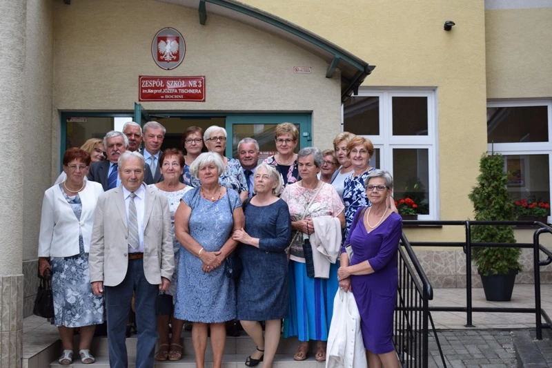 W sobotę 10 czerwca 2017 r. w Zespole Szkół Nr 3 w Bochni o godz. 14.00 rozpoczęła się nietypowa lekcja. W ławach szkolnych spotkała się klasa Technikum Ekonomicznego, która dokładnie 50 lat temu ukończyła szkołę. Spotkanie miało oczywiście charakter wspomnieniowy. Maturzyści sprzed lat chcieli spotkać się w swojej dawnej klasie, w której spędzili swoje lata szkolne, ale niestety pomieszczenie to zamieniło się w hol szkolny, który połączył nową część budynku Zespołu Szkół Nr 3, ze „starą” częścią szkoły i obecnie można się napić np. kawy. Uczestników spotkania interesowało jak wygląda obecna szkoła? W jakich zawodach kształci się młodzież, ilu jest uczniów oraz czy dalej utrzymuje się zdecydowana przewaga dziewcząt nad chłopcami w klasach? Jako obserwator, uczestnik i prowadzący tą nietypową lekcję, śmiało mogę stwierdzić, że wszystkim uczniom Naszej szkoły życzę takich wspaniałych spotkań po latach. Piotr Czekaj