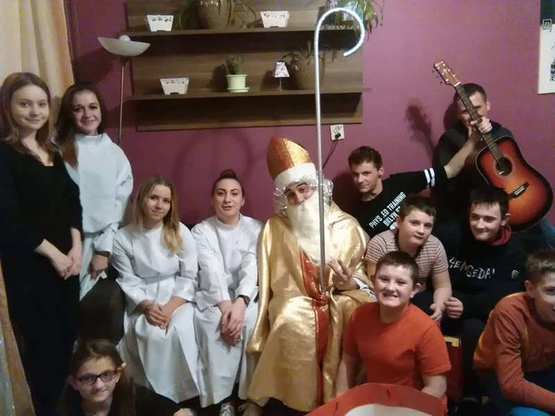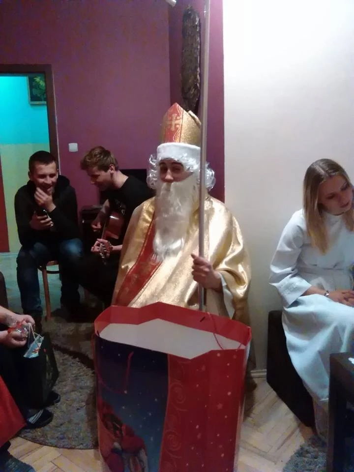 Dnia 19 grudnia 2016 roku wolontariusze naszej szkoły wraz z p. mgr Ewą Szymczyk, p. mgr Anetą Wojcieszek i p. Marią Kortą - Borgosz udali się do Domu Dziecka w Bochni. Z okazji zbliżających się świąt Bożego Narodzenia wychowanków odwiedził Święty Mikołaj, który tradycyjnie przybył ze swoją świtą, aniołami i diabłem. Obdarował podopiecznych prezentami. Aby je otrzymać, dzieci chętnie wykonywały zadania i polecenia dawane im przez Mikołaja. Na koniec wspólnie wyśpiewaliśmy znane wszystkim kolędy i mniej popularne pastorałki. Wychowankowie Domu Dziecka chętnie angażowali się w śpiew. Panowała radosna, ciepła i świąteczna atmosfera. Składamy gorące podziękowania wszystkim uczniom naszej szkoły, którzy włączyli się w akcję “I Ty możesz zostać św. Mikołajem” oraz wolontariuszom za udział w mikołajkowym spotkaniu.