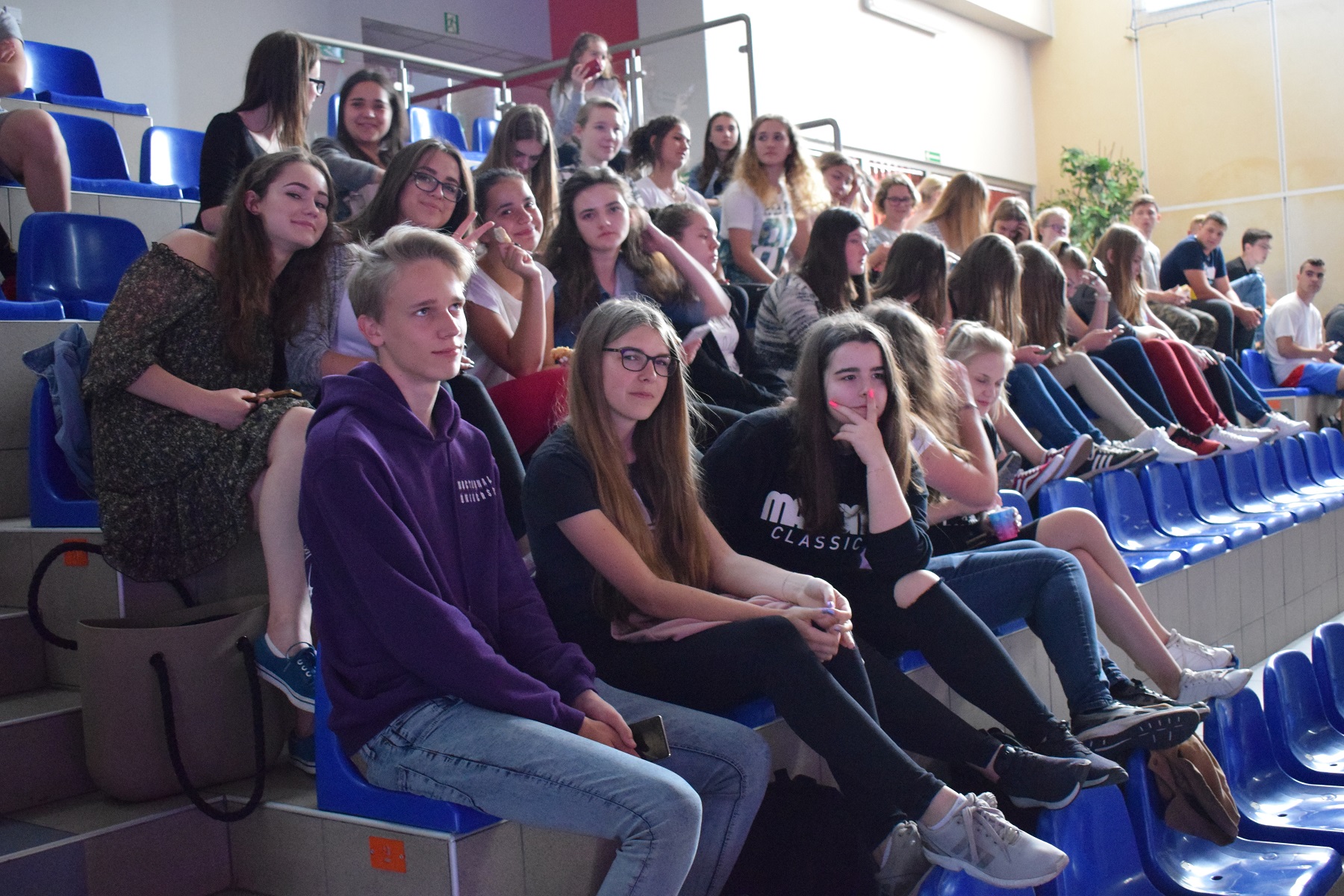 Na widowni nie zabrakło także przedstawicieli ekonomika: Dyrekcji, nauczycieli – opiekunów wolontariuszy i uczniów z klas I TE b i I TE a.