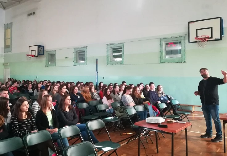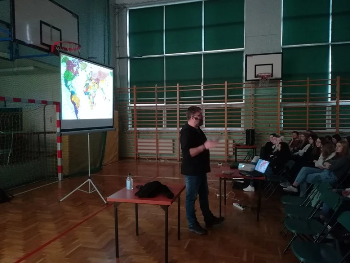 W środę, 20 lutego 2019 r. blisko 400-stu osobowa grupa uczniów z klas 1a, 1b, 1c, 1d, 2c, 2d, 2e, 3a, 3b, 3d, 3f, 4a, 4b, 4c, 4d uczestniczyła w spotkaniu z podróżnikiem z grupy Trzask panem Dariuszem Rocheckim, który tym razem zabrał naszą szkolną społeczność na fotograficzną wyprawę po Islandii - kraju leżącego w północno- zachodniej Europie.