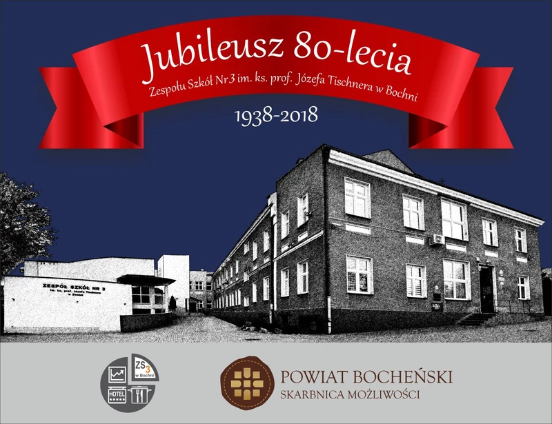 Jak co roku w miesiącu marcu w Zespole Szkół nr 3 w Bochni obchodzony jest Dzień Patrona Szkoły, ks. prof. Józefa Tischnera, który w tym roku połączony został się z jubileuszem 80- lecia powstania placówki. Z tego powodu Dyrekcja, Grono Pedagogiczne, Rada Rodziców i Uczniowie zapraszają 21 marca 2018 r. sympatyków i absolwentów szkoły na inaugurację obchodów 80- lecia Zespołu Szkół nr 3 w Bochni. Uroczystość rozpocznie się mszą świętą w intencji nauczycieli, pracowników szkoły, uczniów i absolwentów w Kościele Szkolnym o godz. 10.00 a następnie o godz. 12.00 w budynku Szkoły przy ul. Krakowskiej, odbędzie się część artystyczna w wykonaniu uczniów i absolwentów Ekonomika. Rejestracja Zaproszonych gości w godz. 11.30 – 12. 00.