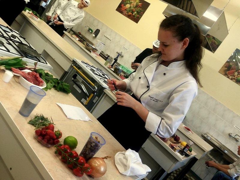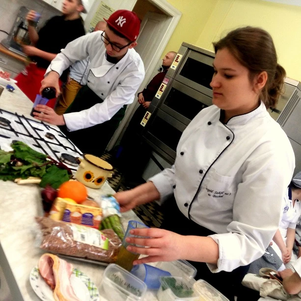 Anna Dziurdzia z klasy II TE f oraz Karolina Kurek z klasy II TE e reprezentowały naszą szkołę w konkursie „Moje dzieło z tajemniczych surowców” organizowanym przez Zespół Szkół Ekonomiczno-Gastronomicznych im J. Piłsudskiego w Tarnowie. Forma konkursu czyli klasyczny Black Box, w którym uczestnicy przygotowują potrawę z nieznanego im wcześniej surowca, uznawana jest za najtrudniejszy styl konkursów kulinarnych. Black Box jest również dużym wyzwaniem dla kucharzy zawodowych…