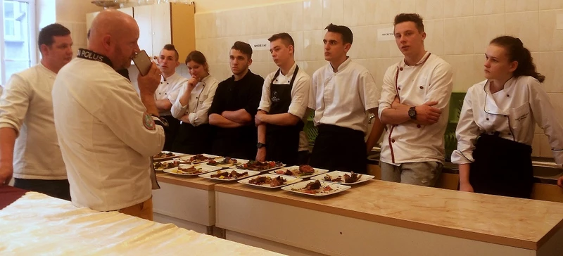 Czarna skrzynka kryła w tym roku cztery surowce – mostek cielęcy, szparagi, botwinkę oraz czosnek niedźwiedzi… Rywalizacja trwała 120 minut, podczas których siedemnastu przyszłych kucharzy tworzyło swoje kulinarne dzieła nadając im formę… konsystencję…. zapach…. barwę… i oczywiście smak! Kompozycja ostatecznie trafiała pod ocenę komisji konkursowej, której przewodniczył Marcin Polus Prezes Stowarzyszenia Małopolskich Kucharzy i Cukierników. Każda potrawa została skrupulatnie skomentowana – a bardzo trafne uwagi były nierzadko pochwałą ale i wskazówką do rozwijania talentu i budowania własnego kunsztu kulinarnego.