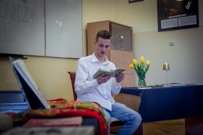 Dnia 12 kwietnia 2017 r w ramach Światowego Dnia Książki odbyło się w naszej szkole czytanie "Wesela" Stanisława Wyspiańskiego, które przygotowali uczniowie III klas technikum. W tym samym dniu przeprowadzono również test ze znajomości dramatu, który rozwiązywali reprezentanci klas: III TEb, III TEc, III TEe oraz III TEf.