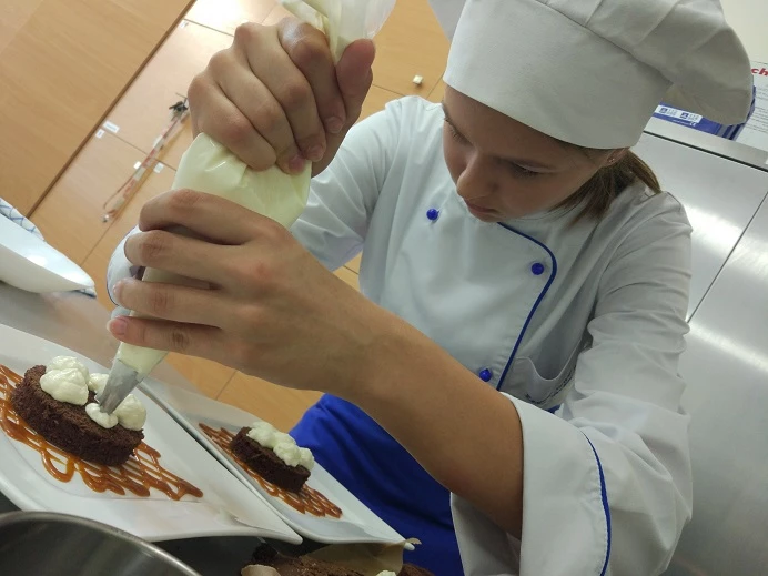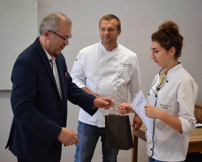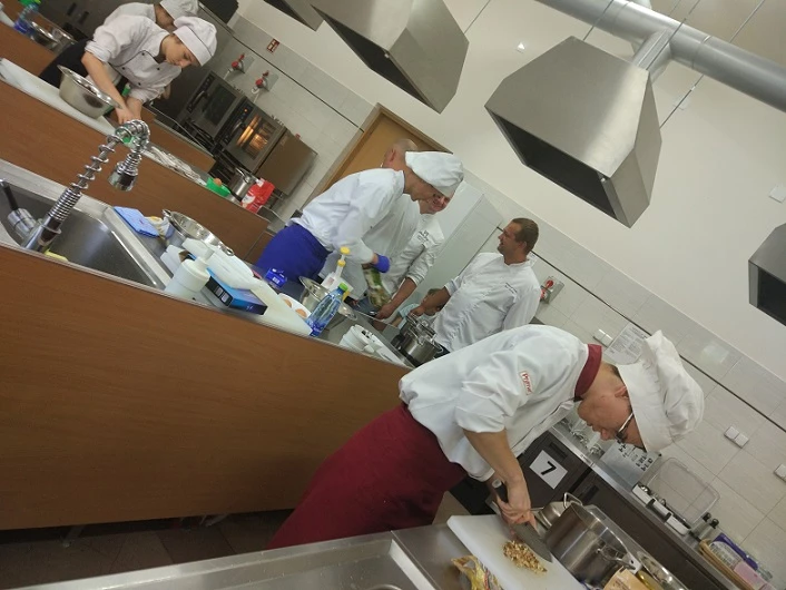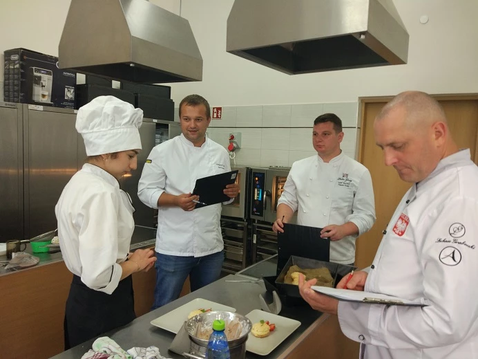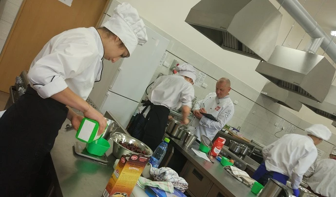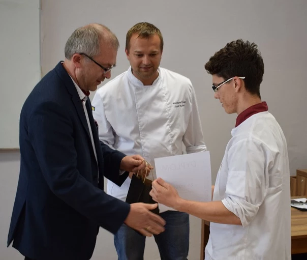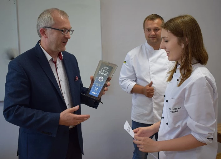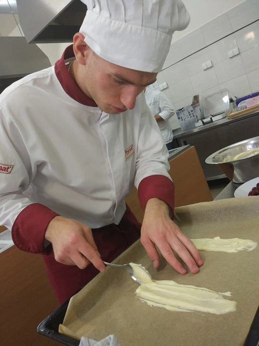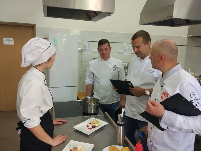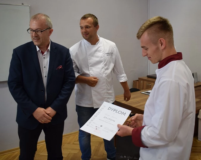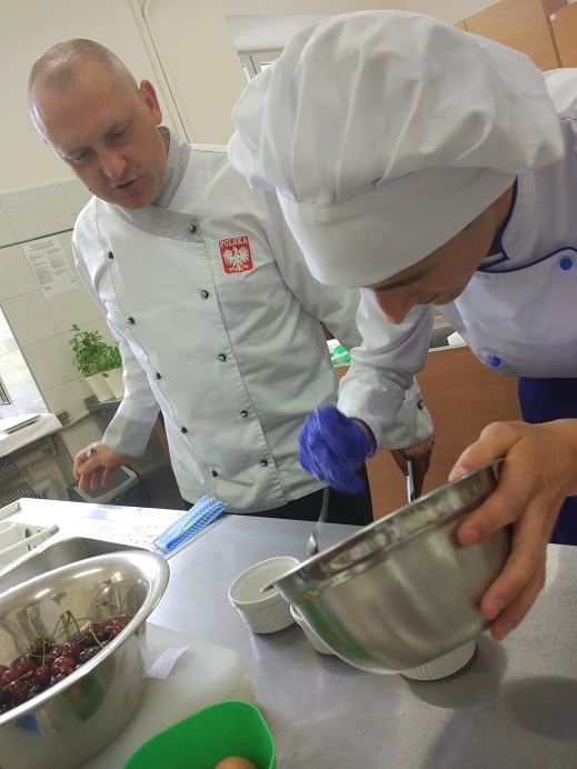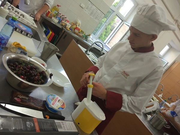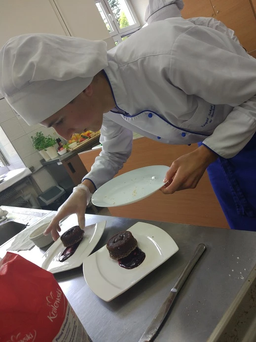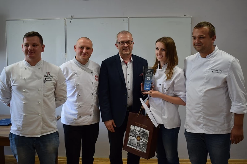 W tegorocznych rozgrywkach o tytuł Kulinarnego Mistrza 2018 r. wzięło udział sześcioro uczestników. Zgodnie z założeniem konkursu Black Box, żaden z nich nie wiedział co kryła będzie „czarna skrzynka”. Wiadomo było tylko, że z ukrytego w jej wnętrzu składnika należy wyczarować „słodki deser”…. Przez 120 minut uczestnicy nie tyle czarowali, co tworzyli cukiernicze dzieło z…. czereśni! Surowiec tylko na pozór prosty – w rzeczywistości wymagający pomysłowości,kulinarnej kreatywności i oryginalności! Bo w konkursie oceniana jest nie tylko końcowa smakowitość dania ale i technika wykonania, jakość pracy, wykorzystanie i dobór dodatków przygotowanych w szerokim asortymencie przez organizatorów oraz aranżacja i estetyka podania…. A oceniało nie lada jury - Krzysztof Lizak – Szef Kuchni Restauracji TaTRadycja w Bukowinie Tatrzańskiej, Łukasz Grabowski – Szef Kuchni Sali bankietowej „Allegra” orazPaweł Kras Szef Kuchni Pałacu Goeztów w Brzesku.Niespodzianką dla wszystkich, były także odwiedziny niezwykłego Gościa – samego Karola Okrasy, który akurat tego dnia gościł w Ekonomiku na zaproszenie szkolnej biblioteki i żywo zainteresowany zmaganiami konkursowymi, zawitał do sali gastronomicznej aby obejrzeć efekty pracy przyszłych kucharzy. A efekty okazały się wyjątkowe i tak naprawdę zwycięskie dla całej szóstki, która miała odwagę pokonać stres i odkryć przed jurorami swoje umiejętności, które nie są przecież jeszcze na tym etapie edukacji i praktyki w pełni profesjonalne i wyczynowe. Talent kulinarny wszystkich uczestników został zauważony i doceniony przez tegoroczne Jury, ale jako że Mistrz musi być tylko jeden, tytuł ten przyznano uczennicy klasy I D Annie Przytuła- która wykonała i zaprezentowała „Ptysie czereśniowe”. Drugie miejsce należało do Jessicy Bukowskiej (kl. II D) za „Torcik czereśniowy na słonym karmelu” a trzecie miejsce zajął Karol Stabrawa (kl. II D) który przygotował „Fondant czekoladowy z sosem czereśniowym”. Pozostali uczestnicy Gabriela Blitek (kl. II F), Łukasz Brzegowy i Patryk Janioł (kl. III B) otrzymali wyróżnienia za udział w konkursie.Fundatorem nagród a jednocześnie partnerem konkursu sponsorującym wszystkie surowce w tegorocznym konkursie była Restauracja „Gospoda nad Rabą”.Patronat Honorowy nad konkursem objął zaś Starosta Bocheński Ludwik Węgrzyn.Więcej zdjęć: https:/l.facebook.com/l.php?u=https%3A%2F%2Fphotos.app.goo.gl%2FVWyPNaGxAOw4OdcE2&h=ATP0K-RHrNJFd_H4yKD1VsGVaUpwGATjOexfog3f2-Bflu9_dWBFHGd3BqE4AF1irqomUW9pfWnEteJiiH9l_nT8SvtkzaY4W5uRYiSKwqChohgS0fzNJw