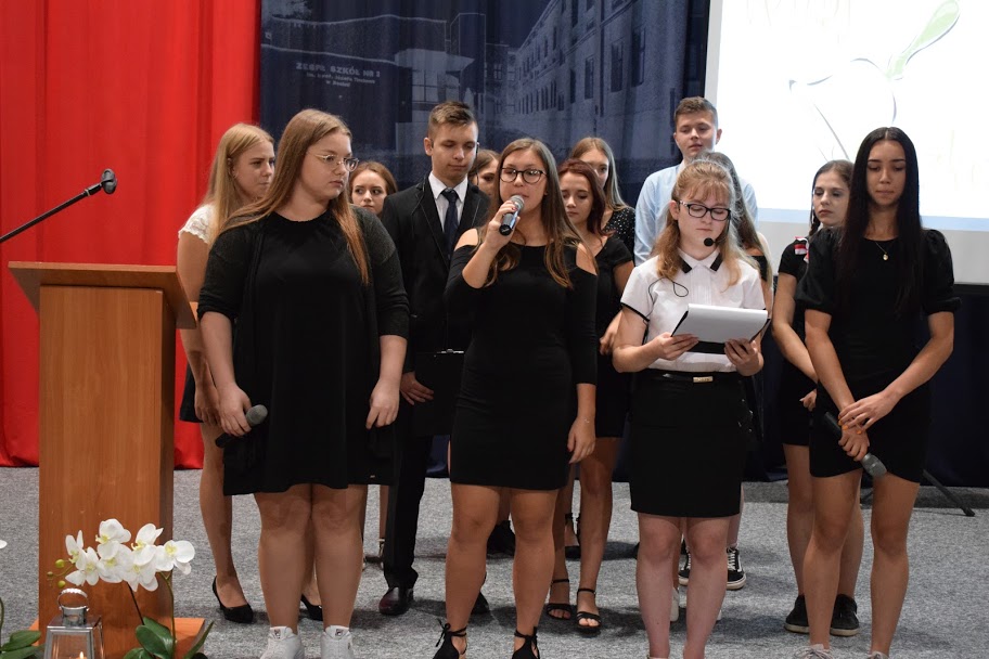 W poniedziałek 2 września 2019 r. w naszej szkole odbyła się uroczysta akademia rozpoczynająca nowy rok szkolny 2019/2020. Po odśpiewaniu hymnu państwowego odbył się krótki montaż słowno-muzyczno-filmowy, którym uczniowie klasy IId wprowadzili wszystkich w zadumę i refleksję upamiętniając tym samym 80-tą rocznicę wybuchu II wojny światowej. Następnie Pan Dyrektor Piotr Czekaj serdecznie powitał nauczycieli, uczniów i pracowników szkoły, rozpoczynając oficjalnie nowy rok szkolny. W sposób szczególny słowa powitania zostały skierowane do uczniów klas pierwszych, którzy zostali przyjęci do grona społeczności Zespołu Szkół Nr 3, by swym sprawowaniem godnie reprezentowali naszą szkołę i wcielali w życie ideały Jej Patrona – ks. prof. Józefa Tischnera.