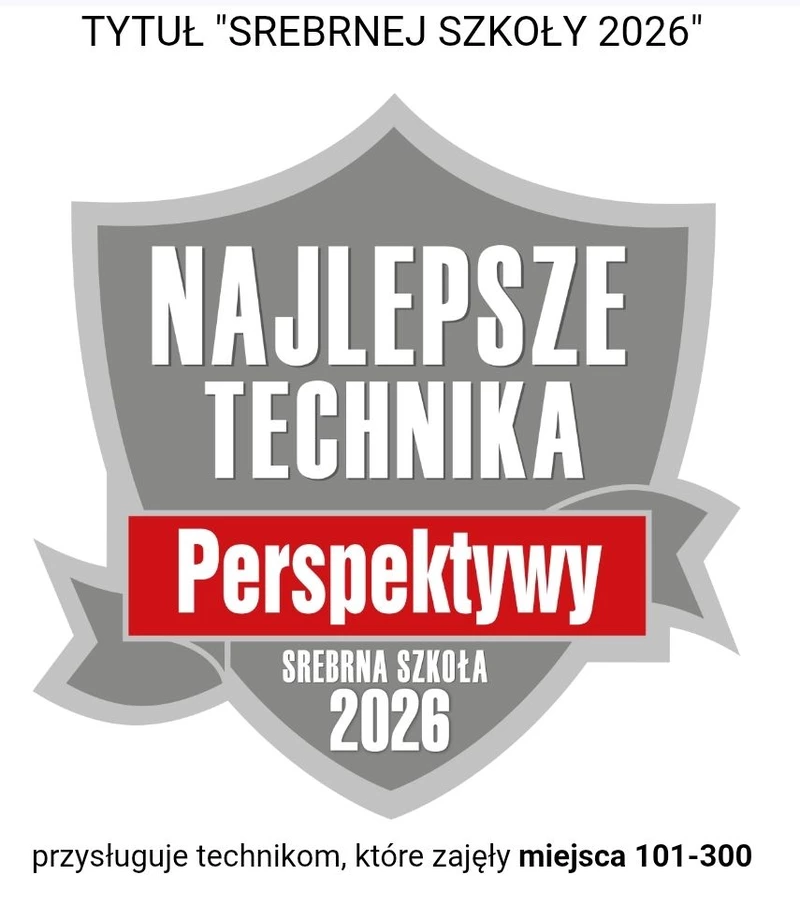 Srebrna tarcza Technikum 2026 dla naszej szkoły.