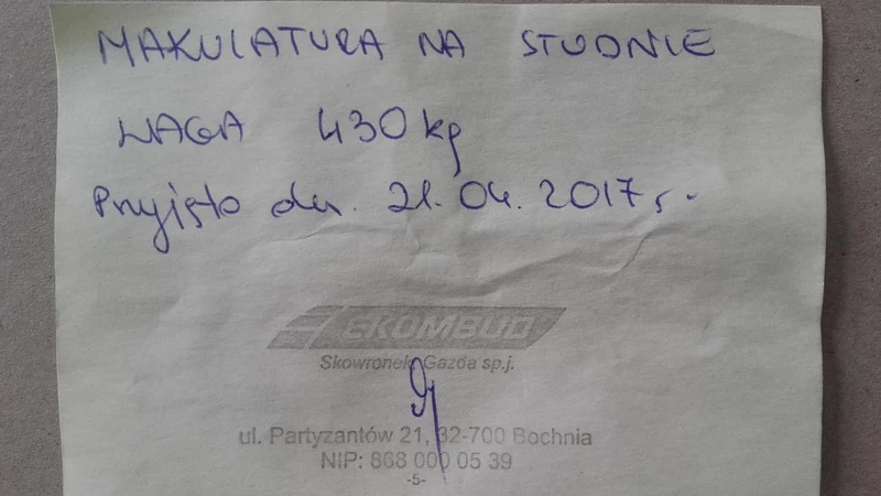 aż 430 kg zebranej makulatury. Przypomnijmy, że według stosowanego przelicznika