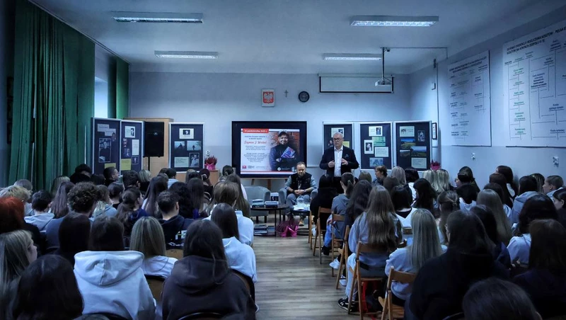 Takie właśnie spotkanie odbyło się w naszej szkole. Była dyskusja pełna wartościowych myśli i słów. Autor na nowo opowiedział nam i oswoił księdza Tischnera, w końcu to rok naszego patrona, a Szymon Wróbel - autor książki i reżyser filmu "Jego oczami" o księdzu prof. J. Tischnerze, jest najlepszym źródłem tej wiedzy.