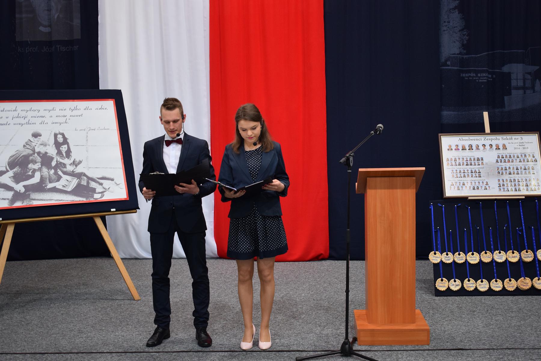 27 kwietnia 2018 r. Abiturienci ZS Nr 3 ukończyli swoją szkolną drogę, którą wędrowali cztery lata. Dzień ten był dla Nich wyjątkowy - pełen radości, refleksji i wspólnych wspomnień, od których niejednemu z Nich łezka zakręciła się w oku. Uroczystość ta była okazją do wręczenia przez Pana Dyrektora nagród, wyróżnień oraz podziękowań za sukcesy w różnych dziedzinach, jak również listów gratulacyjnych dla Rodziców za wzorowe zachowanie i osiągnięcia w nauce Ich dzieci. Po raz kolejny przyznane zostały również statuetki „Primus inter pares” czyli „Najlepszy z najlepszych” w kategorii „Nauka” i „Praktyka” . Statuetki otrzymali: Justyna Kruczek z kl. IV TEa – ”Najlepszy Technik Ekonomista” (kategoria nauka) Małgorzata Maj z kl. IV TEb – „Najlepszy Technik Żywienia i Usług Gastronomicznych” (kategoria nauka) Krzyszktof Kulig z kl. IV TEc - „Najlepszy Technik Żywienia i Usług Gastronomicznych” (kategoria praktyka) Maciej Kurek z kl. IV TEc - „Najlepszy Technik Żywienia i Usług Gastronomicznych” (kategoria praktyka) Agnieszka Stachura z kl. IV TEf – „Najlepszy Technik Hotelarstwa” (kategoria nauka) Jolanta Zaczek z kl. IV TEf - „Najlepszy Technik Hotelarstwa” (kategoria nauka i praktyka) Nie mogło również zabraknąć naszych tradycyjnych „Józefinek”, które zostały wręczone uczniom wyróżniającym się w różnych aspektach szkolnego życia:)
