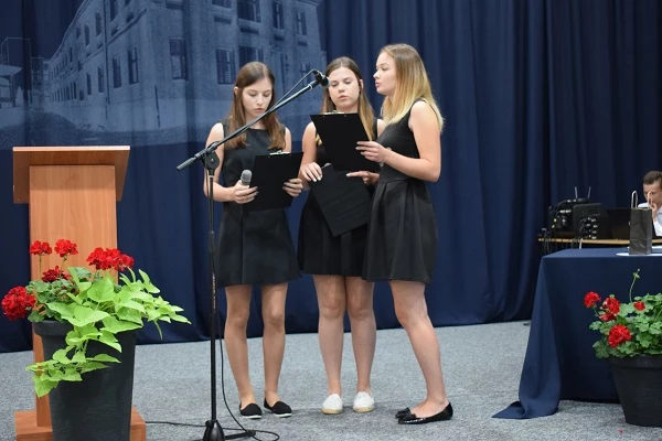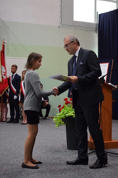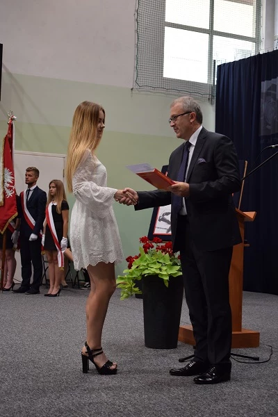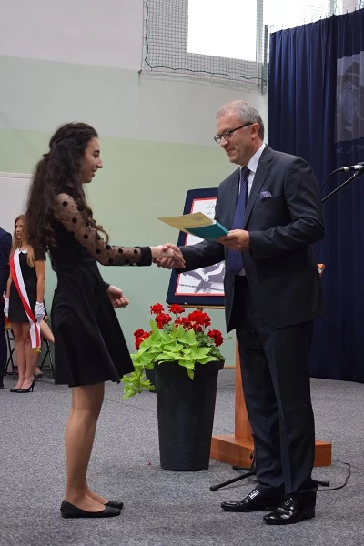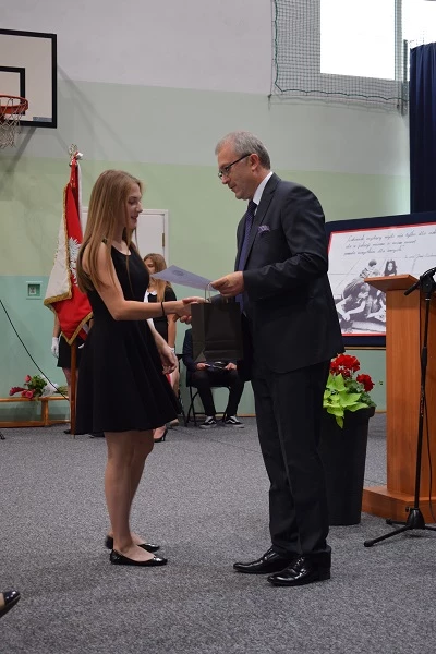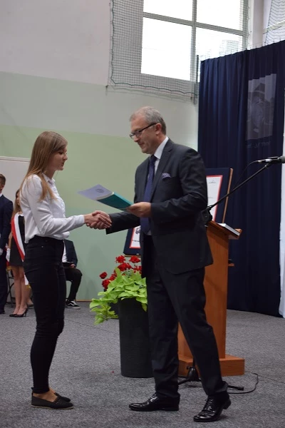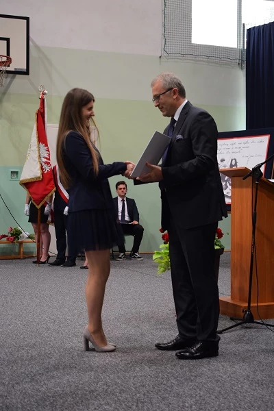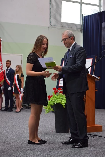 Pan Dyrektor Piotr Czekaj podsumował wyniki całorocznej pracy, a następnie wręczył świadectwa z wyróżnieniem oraz nagrody książkowe dla uczniów, którzy osiągnęli bardzo dobre wyniki w nauce, wysoką frekwencję, reprezentowali szkołę w konkursach i olimpiadach przedmiotowych, zawodach sportowych oraz brali aktywny udział w Wolontariacie, pracach na rzecz szkoły lub klasy.
