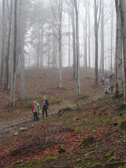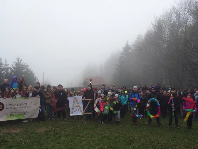 W Złazisku wzięło udział około 200 uczestników – młodzieży wraz z opiekunami szkół gimnazjalnych i ponadgimnazjalnych Powiatu Bocheńskiego. Naszą szkolną grupę prowadził ks. Marek Mierzyński. Wędrowaliśmy wiosennym szlakiem- zielonym trasą z Poręby – na Kudłacze ( 734 m n.p.m.).