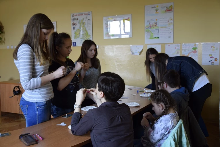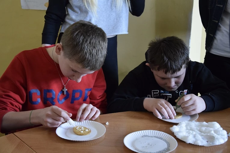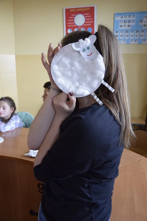 30 marca gościliśmy u nas w szkole dzieci z Domu Dziecka. Wolontariuszki z klasy 1 Te a ( Kinga Zapiór, Antonina Mucha, Ula Bożek, Justyna Kmiecik, Zuza Rojek, Natalia Jonak i Ada Kukla) po raz kolejny przygotowały ciekawe zajęcia językowo-plastyczne. Nasi goście nauczyli się paru angielskich słówek dotyczących wiosny i Wielkanocy, zaśpiewali wesołe angielskie piosenki, a następnie wykonali wspaniałe prace plastyczne- puchate, białe owieczki. Dzięki Klaudii Szczygieł z klasy 3 te d mieliśmy możliwość udekorowania (i zjedzenia) pysznych ciasteczek w kształcie jajka. Dzięki dobrej zabawie wszyscy poczuliśmy klimat nadchodzących świąt. W organizacji tego spotkania pomogły wolontariuszkom p. Maria Korta-Borgosz i p. Aneta Wojcieszek.