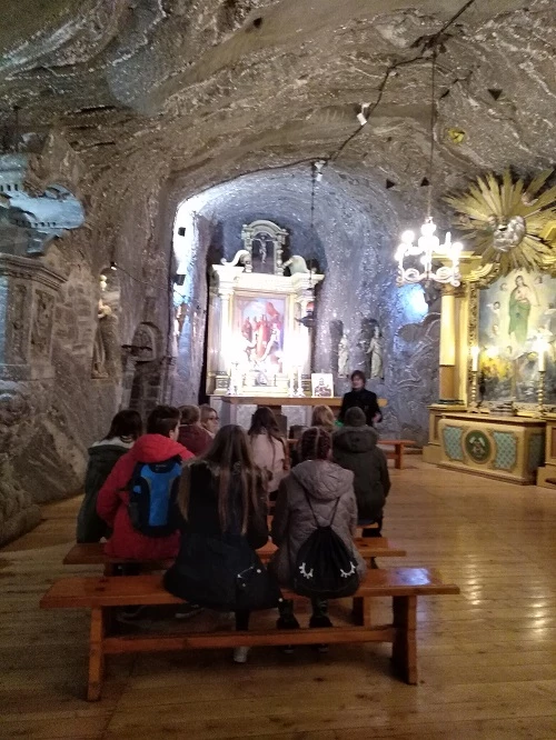 Zwiedzanie rozpoczęło się zjazdem głównym szybem i podróżą podziemną kolejką. Podziemne "metro" przemierza kilometrową trasę pomiędzy szybami Sutoris i Campi, 212 metrów pod ziemią i jest jedną z nielicznych tego typu atrakcji w Europie.Bocheńska kopalnia jest najstarszą której początki sięgają 1248r. Dzięki oddaniu do użytku multimedialnej trasy turystycznej zyskała zupełnie nowe oblicze. Za pomocą interaktywnych i holograficznych inscenizacji oraz przestrzennych słuchowisk młodzież miała okazję poznać średniowieczne techniki wydobycia soli, zwyczaje górnicze, dawny system transportowy i wentylacyjny. Ostatnim punktem pobytu pod ziemią było zwiedzanie kaplicy św. Kingi z wykutymi w soli ołtarzami oraz poznanie legendy o Św. Kindze i soli. Od niedawna znajduję się tam rzeźba Jana Pawła II, wykonana w soli przez jednego z bocheńskich artystów. Zwiedzanie miało charakter podróży w czasie, było doskonałym sposobem na odpoczynek w leczniczym mikroklimacie oraz niezwykłą lekcją pozwalającą zapoznać się z wyjątkowymi zabytkami ziemi bocheńskiej.