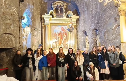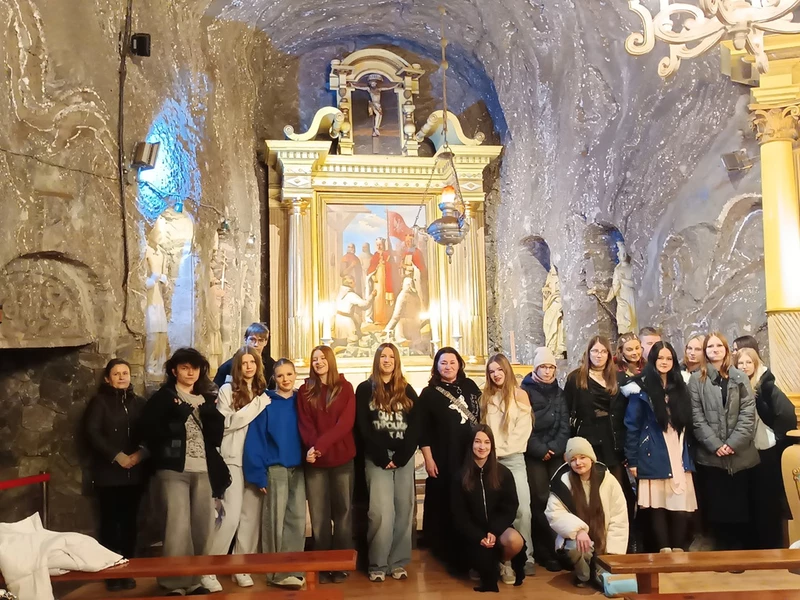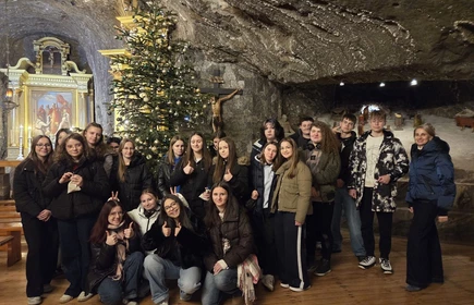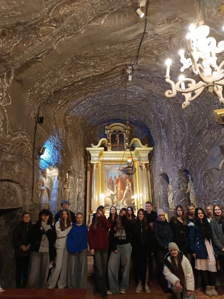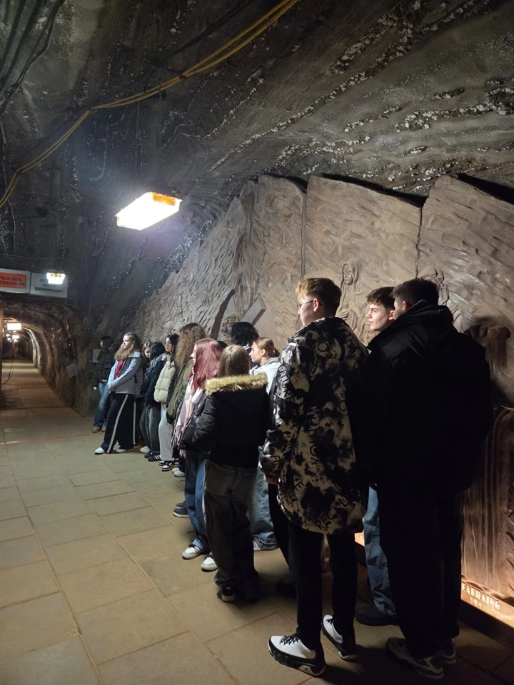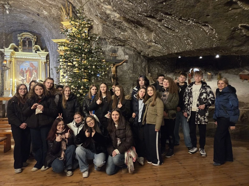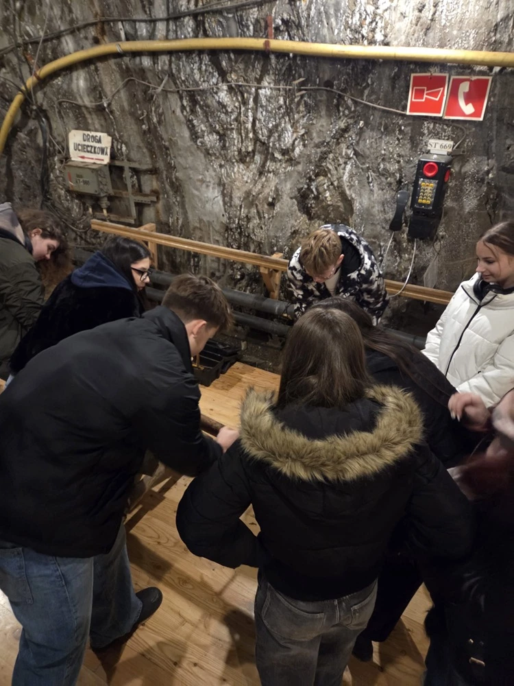 Klasy 1a, 1b, 1c i 1d, 1BS, 2 BS wraz z wychowawcami i opiekunami uczestniczyły w spotkaniu wigilijnym w Kopalni Soli w Bochni. Zjazd odbył się szybem Campi, skąd wszyscy zeszli w głąb jednej z najstarszych kopalń soli w Polsce. Podczas pobytu uczniowie brali udział w różnorodnych zadaniach integracyjnych i sprawnościowych, takich jak tworzenie sznura, odmierzanie soli, przecinanie piłą „moja–twoja” czy wbijanie gwoździ na czas. Zadania te wymagały współpracy, zaangażowania i dobrej komunikacji, a przy tym dostarczyły wielu emocji i radości.