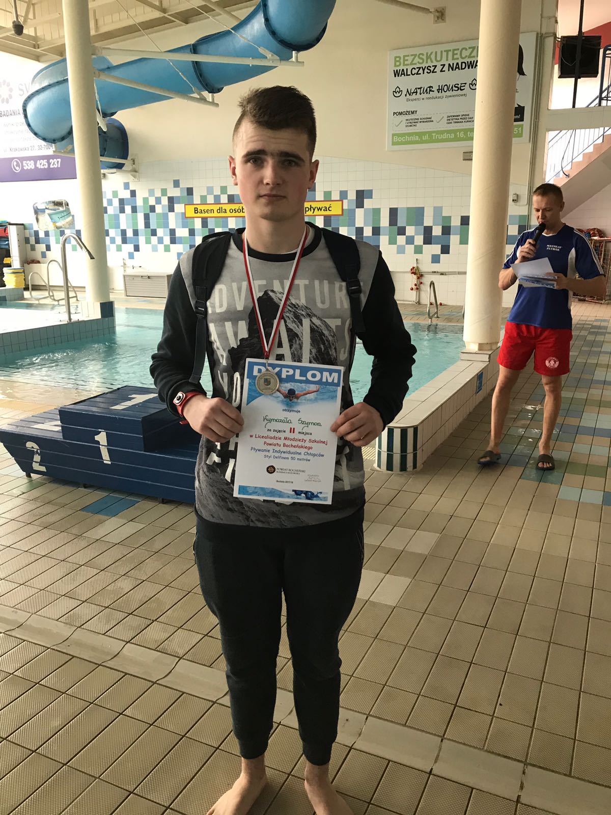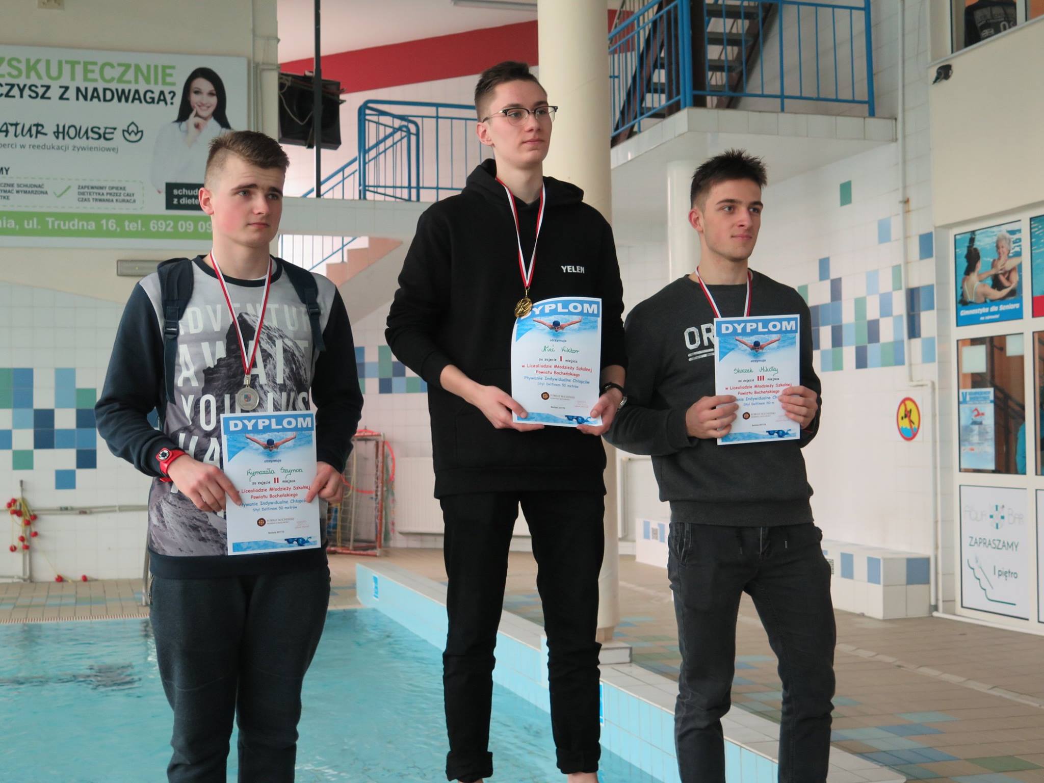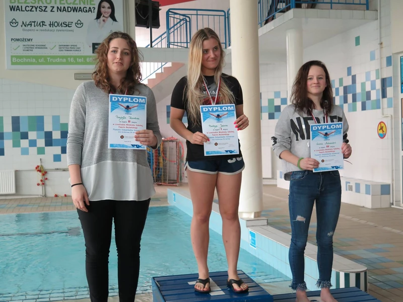 W piątek 26 stycznia ,w gościnnych murach Krytej Pływalni w Bochni, odbyły się Zawody Powiatowe w Pływaniu Indywidualnym i Drużynowym Dziewcząt i Chłopców, rozgrywane w ramach Licealiady Młodzieży Szkolnej. Drużynowo nasi chłopcy zajęli III miejsce, a w konkurencjach indywidualnych miejsca na podium zajęli: